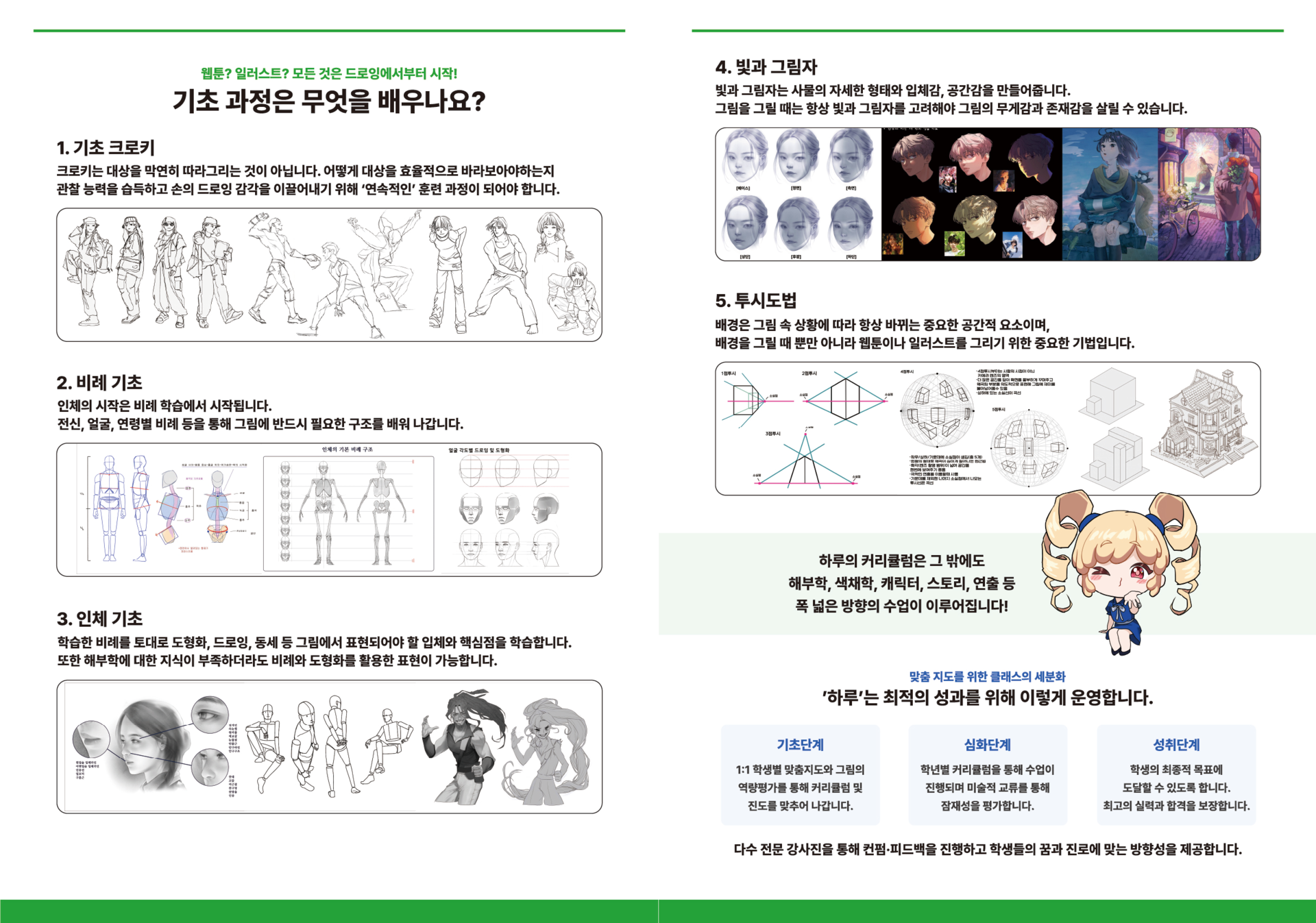 하루 애니웹툰미술학원은 이름에 담긴 의미처럼