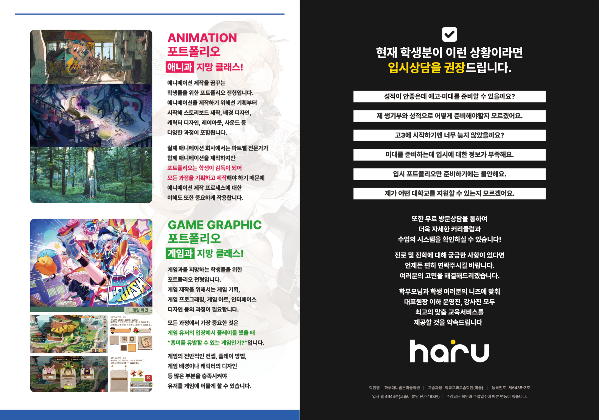 하루 애니웹툰미술학원(구 에스유투) 소개입니다.